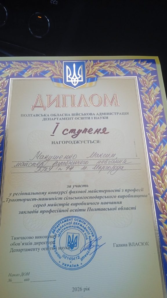З метою підвищення престижності професії майстра виробничого навчання, виявлення та поширення кращого педагогічного досвіду , впровадження інноваційних технологій на базі Державного навчального закладу “Гадяцьке вище професійне аграрне училище” 15 квітня 2026 року проводився регіональний конкурс фахової майстерності серед майстрів виробничого навчання за професією «Тракторист – машиніст сільськогосподарського виробництва».